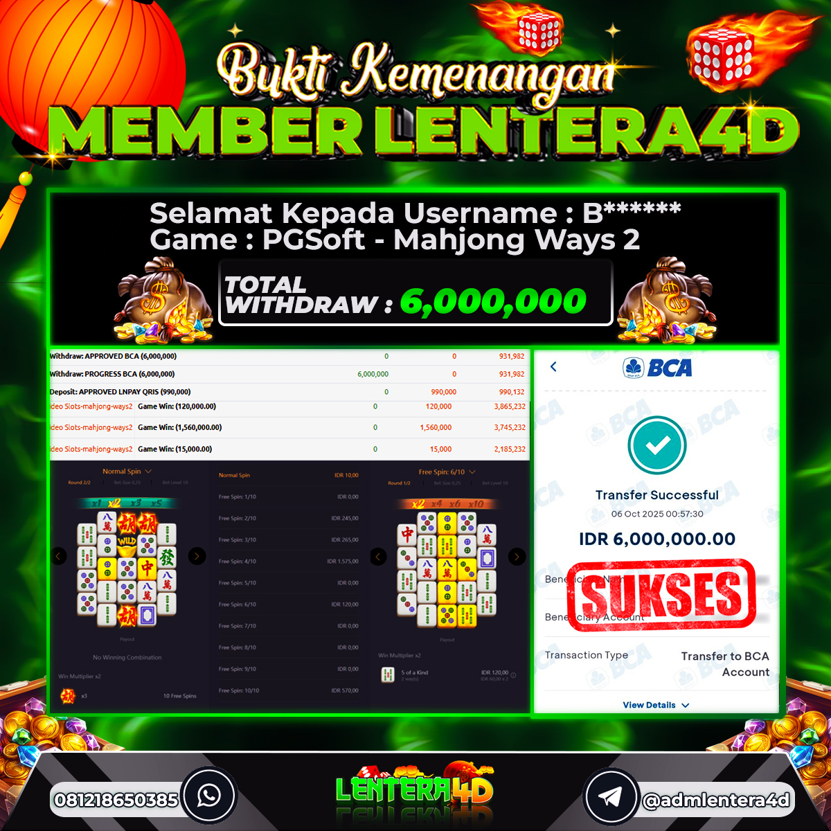 JACKPOT MAHJONG WAYS 2 06 OKTOBER 2025, Jackpot Slot Gacor, Kemenangan Slot, Bukti Kemenangan Slot, Kemenangan Slot PG SOFT, Menang Slot online, Slot Gacor, Situs Aman Terpercaya, WD Berapapun Pasti DI Bayar Tuntas, Maxwin Slot Online.