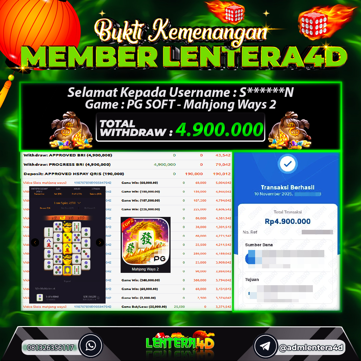 TOTAL KEMENANGAN : Rp. 4.900.000,-