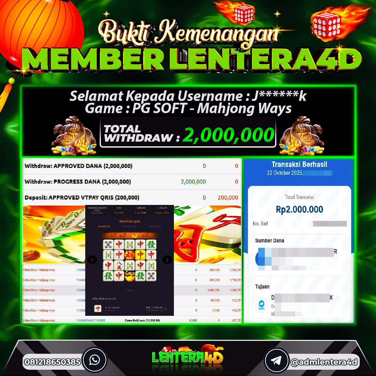 Satu lagi Bukti JP dan Pembarayan Sah Dan Dapat Dipertanggung Jawabkan, WD Berapapun Pasti Dibayar Lunas Hanya di Situs LENTERA 4D. Hati Hati Kepada Pihak Pihak Yang Mengatas namakan Pihak LENTERA4D Untuk Melakukan Penipuan.
