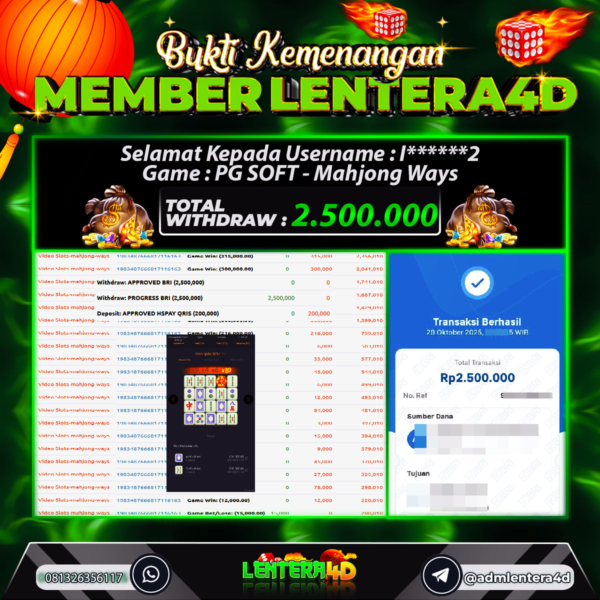 JACKPOT MAIN MAHJONG WAYS 29 OKTOBER 2025, Jackpot Slot Gacor, Kemenangan Slot, Bukti Kemenangan Slot, Kemenangan Slot PG SOFT, Menang Slot online, Slot Gacor, Situs Aman Terpercaya, WD Berapapun Pasti DI Bayar Tuntas, Maxwin Slot Online.