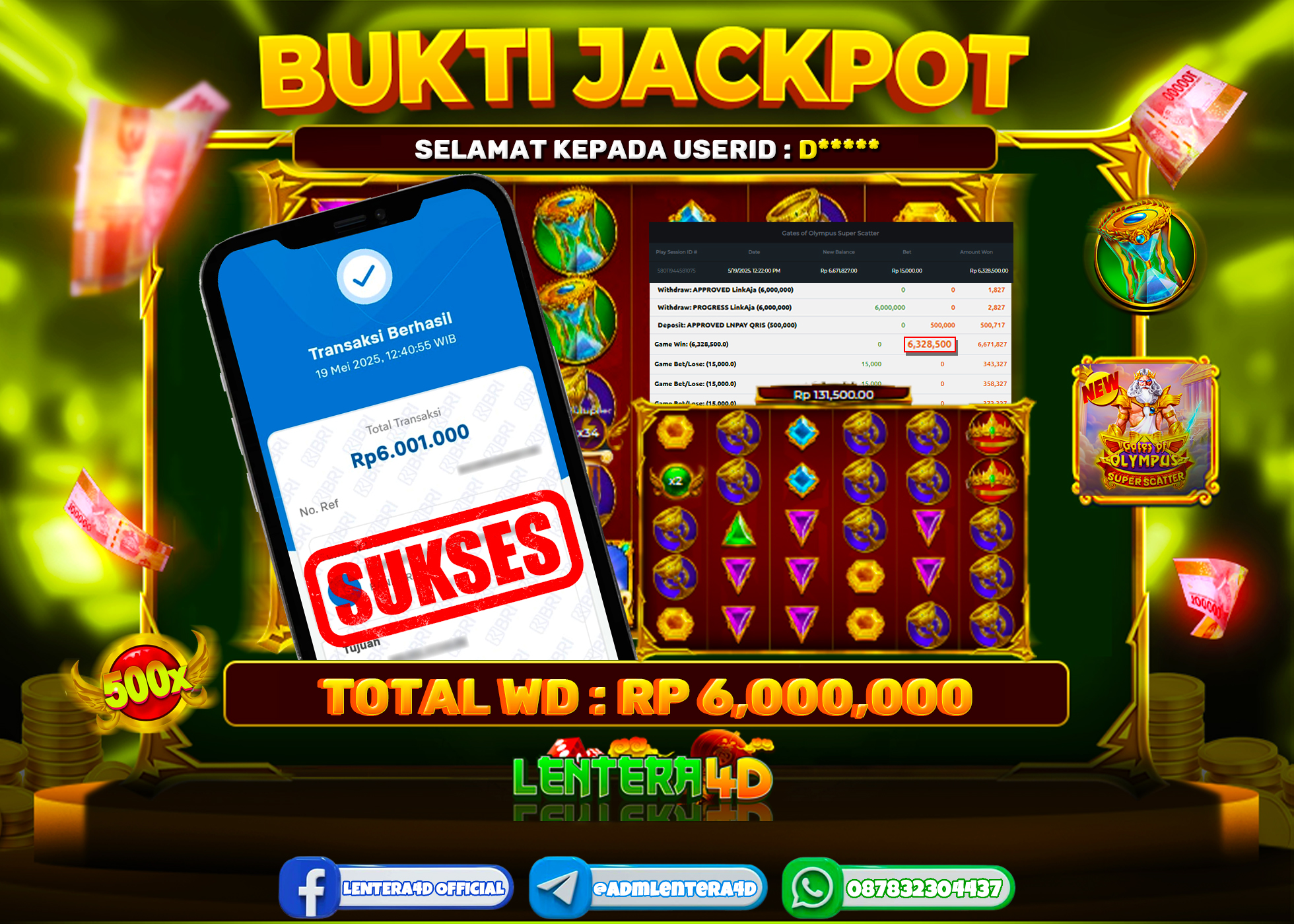 Satu lagi Bukti JP dan Pembarayan Sah Dan Dapat Dipertanggung Jawabkan, WD Berapapun Pasti Dibayar Lunas Hanya di Situs LENTERA4D. Hati Hati Kepada Pihak Pihak Yang Mengatas namakan Pihak LENTERA4D Untuk Melakukan Penipuan.
