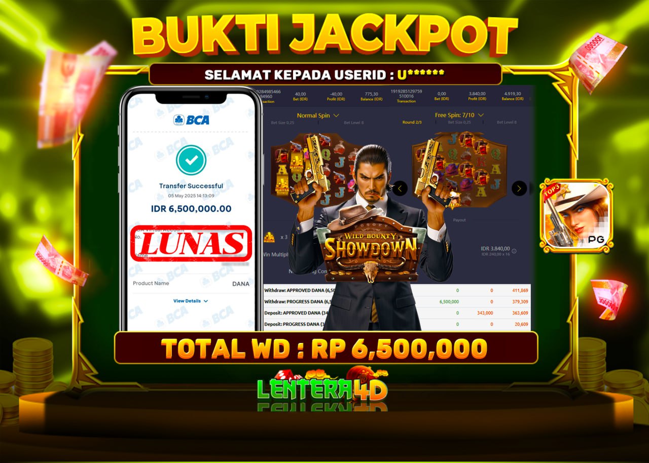 Setiap hari, member Lentera4D berhasil meraih jackpot besar dari berbagai provider slot ternama yang kami sediakan, seperti Pragmatic Play, Habanero, PG Soft, dan masih banyak lagi. Kami secara rutin menampilkan bukti screenshot atau rekapan kemenangan yang berhasil diraih, mulai dari kemenangan ratusan ribu hingga puluhan juta rupiah. Semua slip kemenangan ini kami hadirkan untuk membuktikan bahwa di Lentera4D, peluang menang itu nyata.